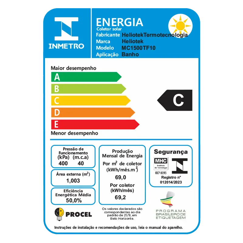 O aquecedor solar Heliotek MC1500 oferece uma solução eficiente e sustentável para aquecer água, proporcionando economia na conta de luz e reduzindo a pegada de carbono.