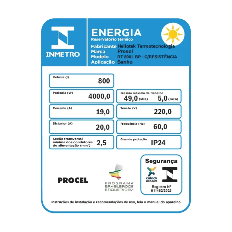 A certificação INMETRO atesta a qualidade e segurança de todos os nossos produtos.